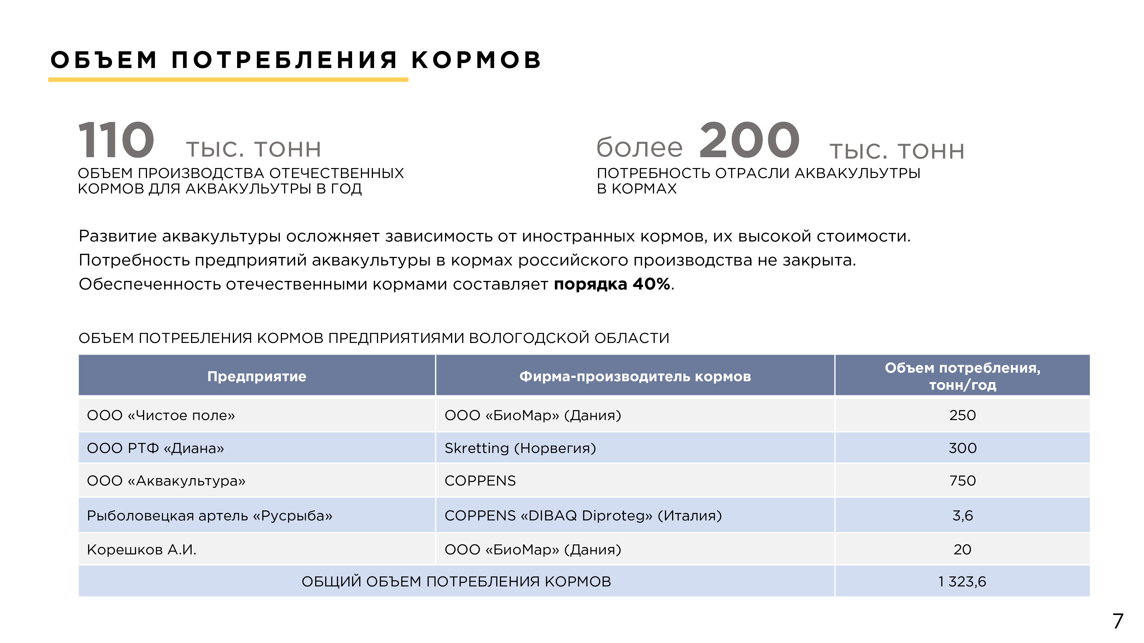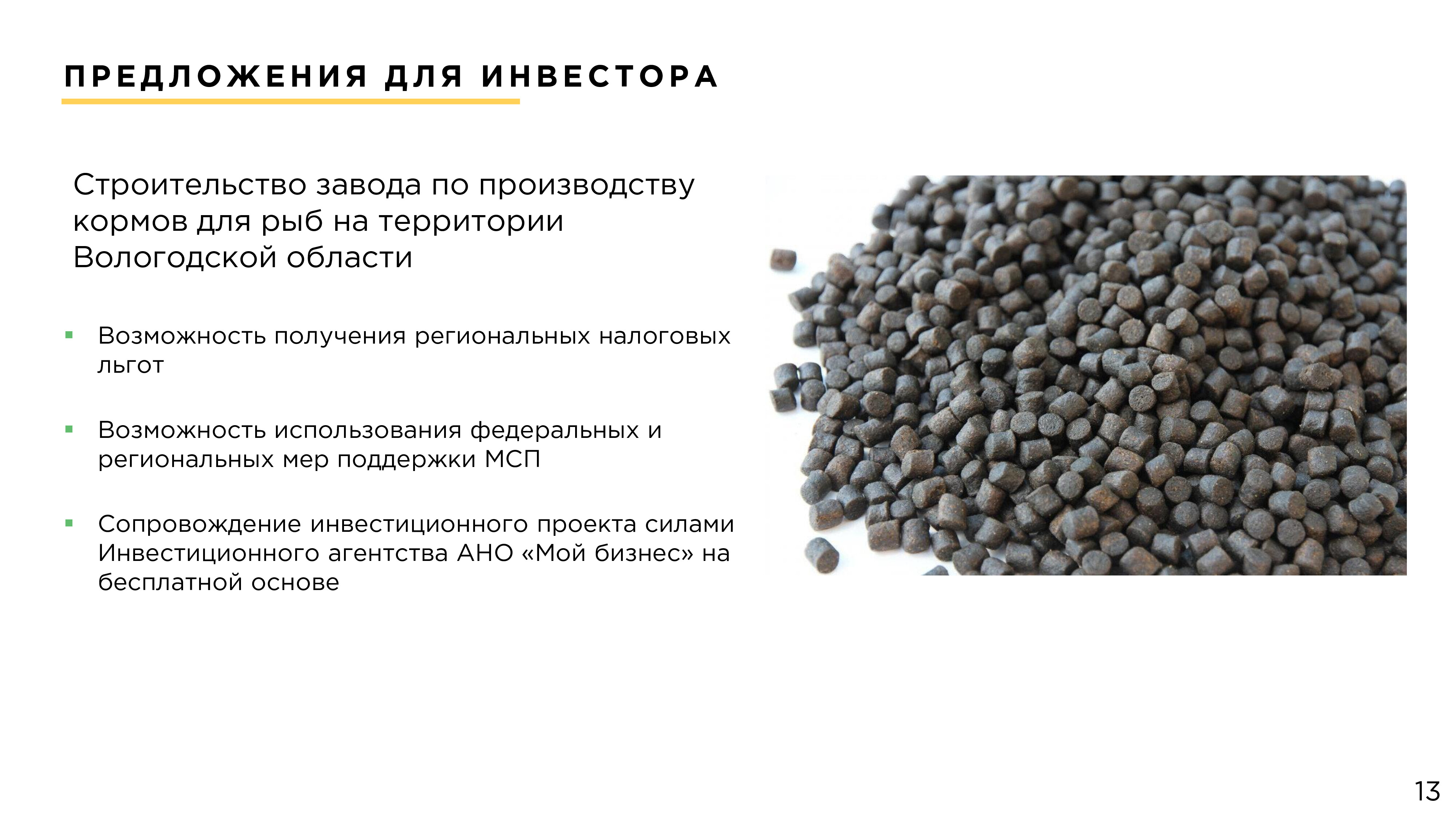 Строительство завода по производству кормов для рыб на территории Вологодской области.
