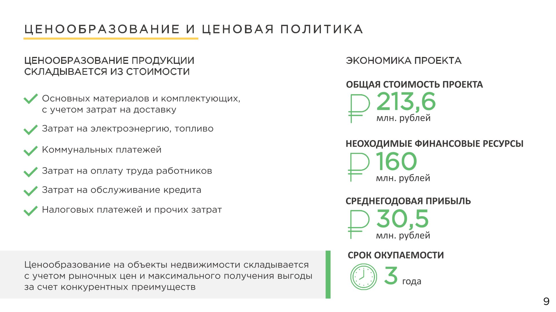 Общая стоимость проекта - 213,6 млн. руб.Необходимые финансовые ресурсы - 160 млн. руб.